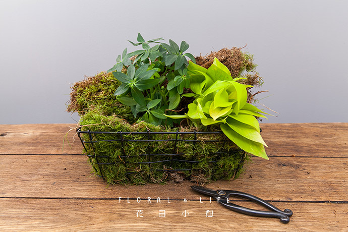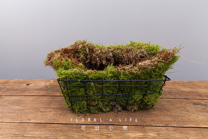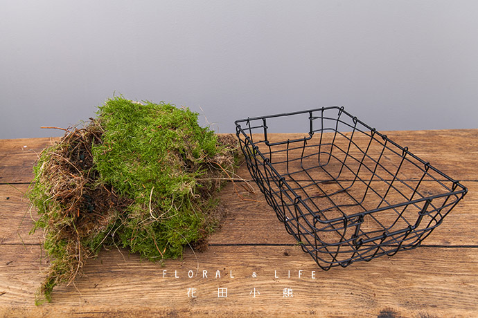 准备好一个铁艺篮筐和适量的草皮。