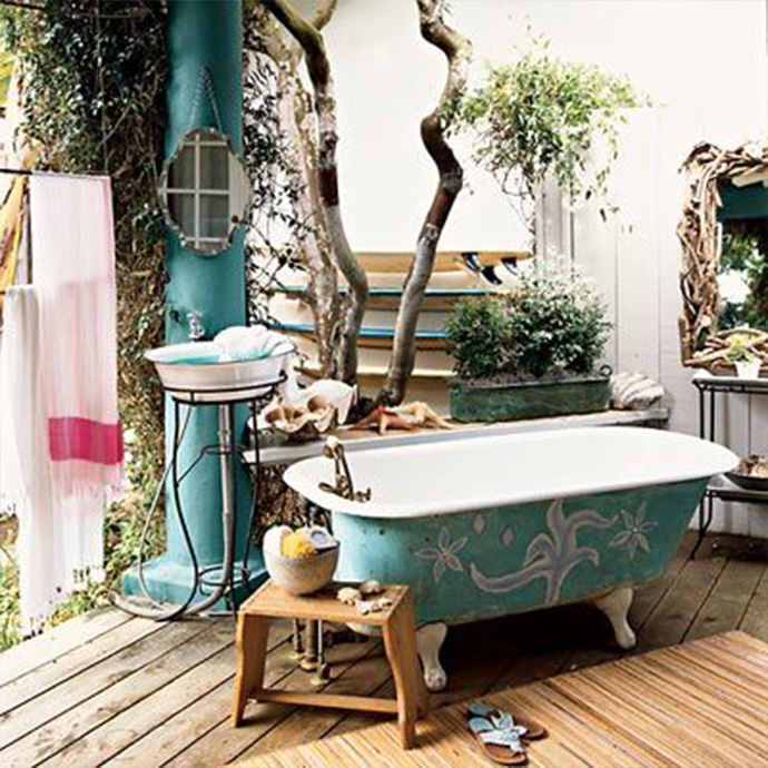 为一个对洗浴爱得深沉的人,最大的梦想是有一间建造在山谷深林里的澡房,原木浴盆、落地玻璃、藤蔓缠绕,树影绰绰,花草的清香和天然气息.对着大海来一个泡泡浴,那种感觉应该是极美好的.