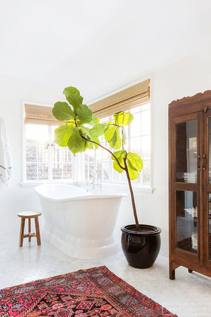 如果不喜欢太茂密的绿植,想要看起来干净整洁,也可以只选择一点点绿植点缀纯白的浴室