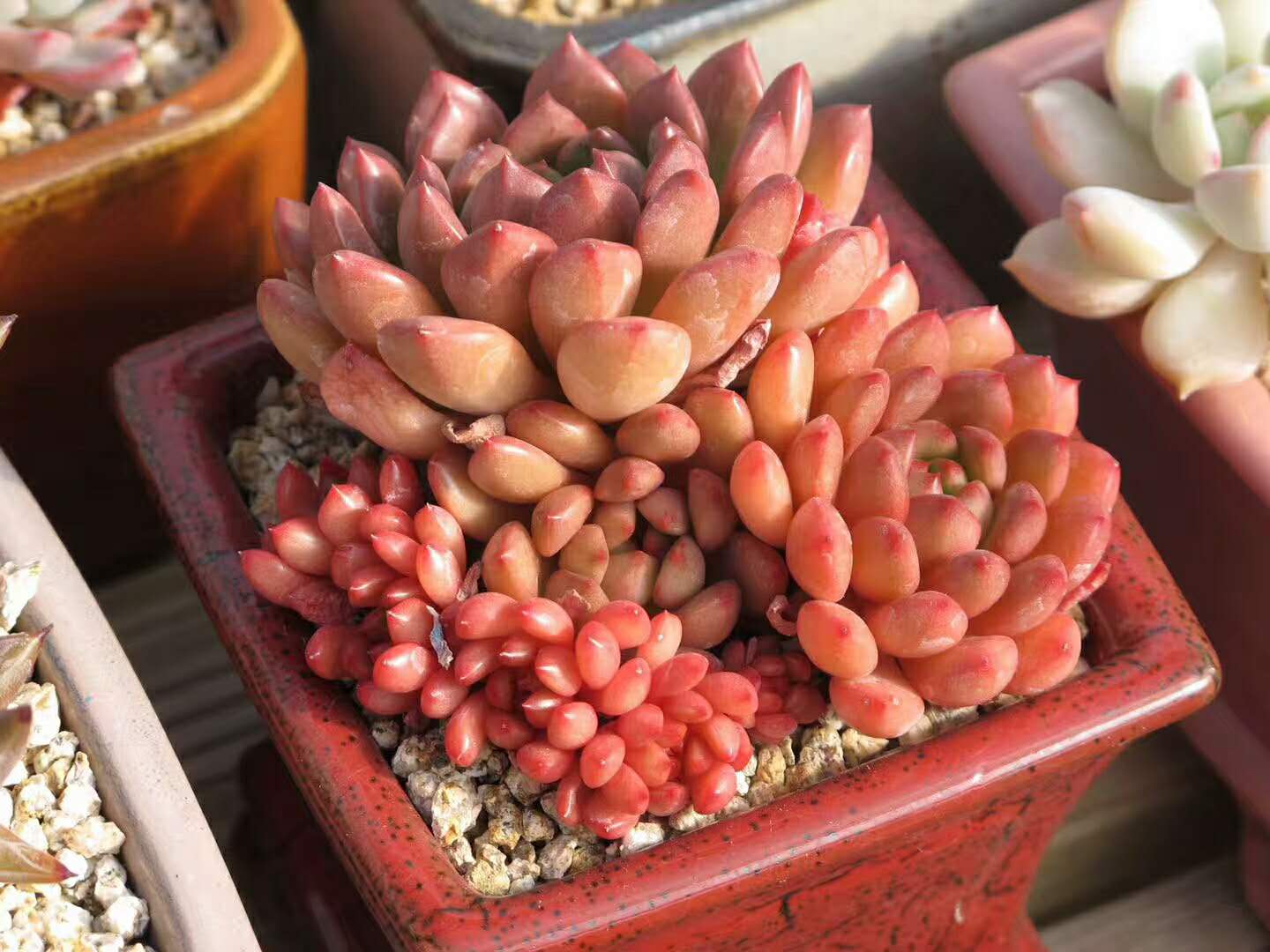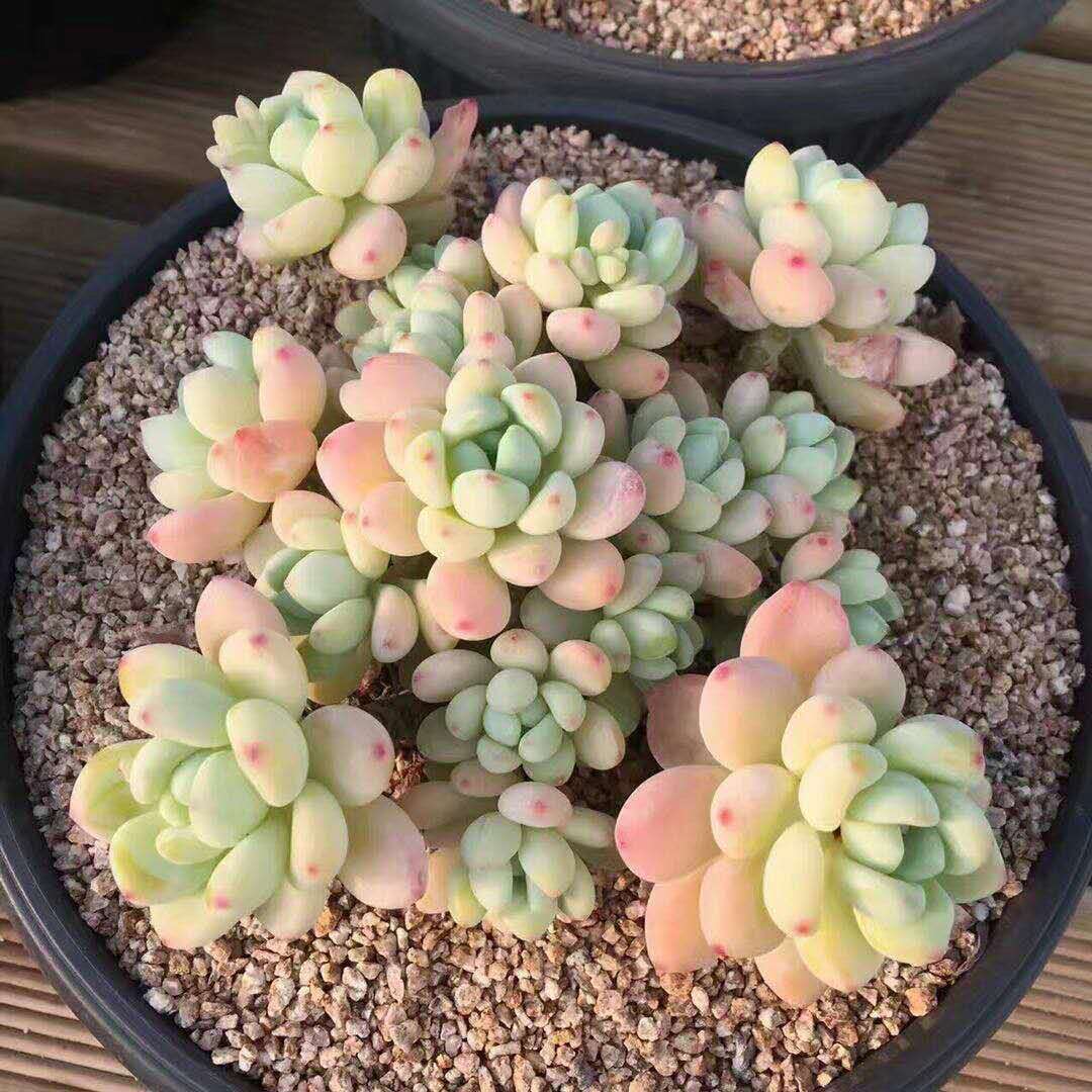 大棚购入的黑方里的多肉在换盆时,可以将黑方缓缓倒扣在手上,轻挤外壁,将多肉缓缓挪拉出来,无需修根直接植入新盆即可。