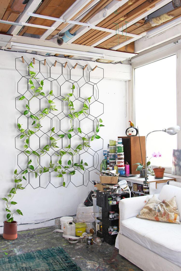 用金属丝按规则或不规则的方式组合成一个整体,让植物顺着几何架构自然的延伸和生长,待它茂盛时你收获的不仅是满眼的绿色好风景,更是清新怡人的好空气。推荐植物:绿萝。