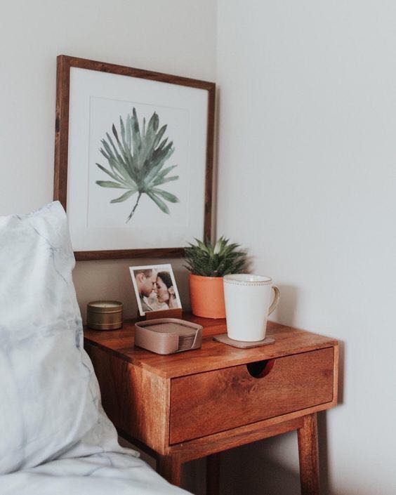 床头柜除了摆放一些小盆栽外,偶尔挑选一些自己喜欢的鲜花来搭配也是一件非常能够提高幸福感的事情,但是鲜花适合选择一些香气淡雅的,香味太浓会影响睡眠,在植物的色彩上也不易选用过于艳丽的花卉。