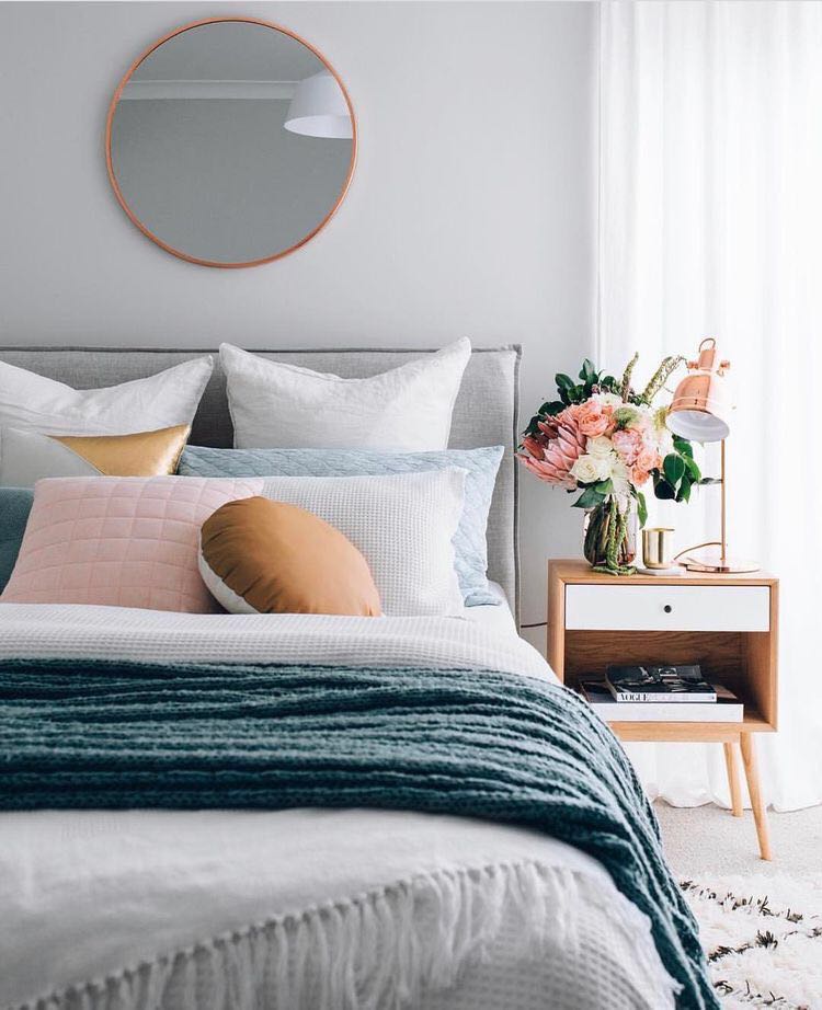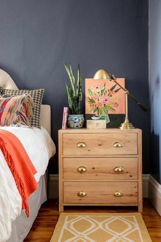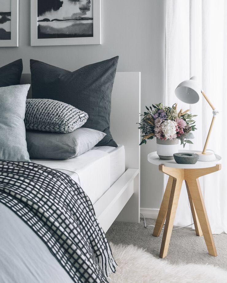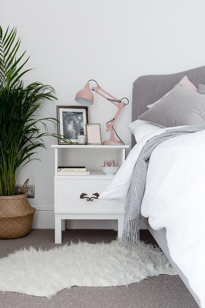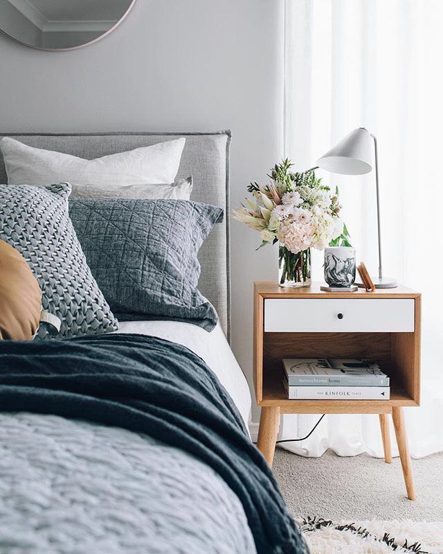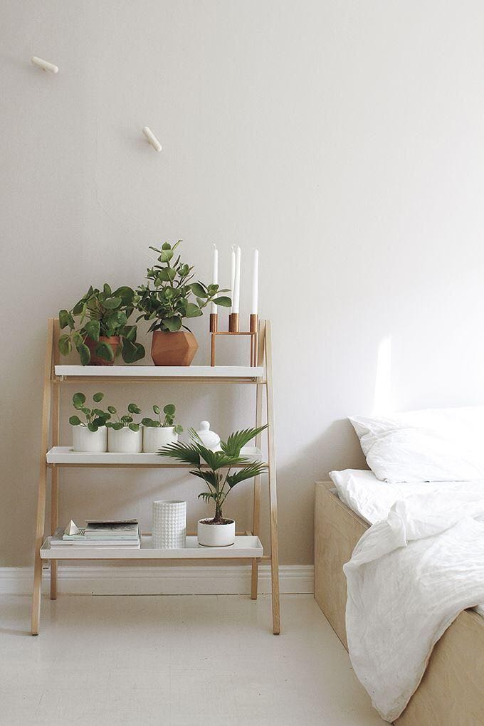 另外,为了更好的节约空间,很多人直接用小架子来当做床头柜,比如下图这种,可以置物的同时,也用来放一些小绿植,这样的搭配是不是极具生活感呢?