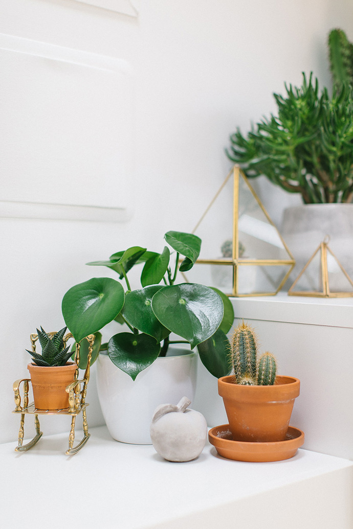 如果想让家中多一些自然气息,那么室内的家具上,不妨也放一些小植物。诸如餐桌、茶几、书柜等处,都可以成为小花小草的安营扎寨处。