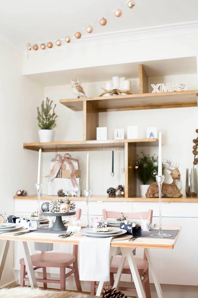 金色是很有节庆气息的颜色,对于中国人而言,还有财运的象征,因此,圣诞节前夜,不妨以讨喜的金色作为主题色布置屋子,讨个好彩头?