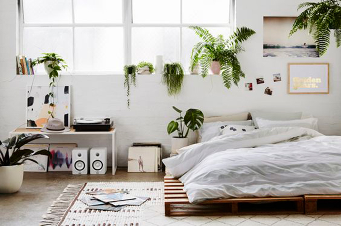 卧室装饰卧室是人们休息的地方,且面积较小,故布置植物不宜过多,宜安排小型 的盆花,不宜摆放悬吊的植物。:芦荟、文竹。