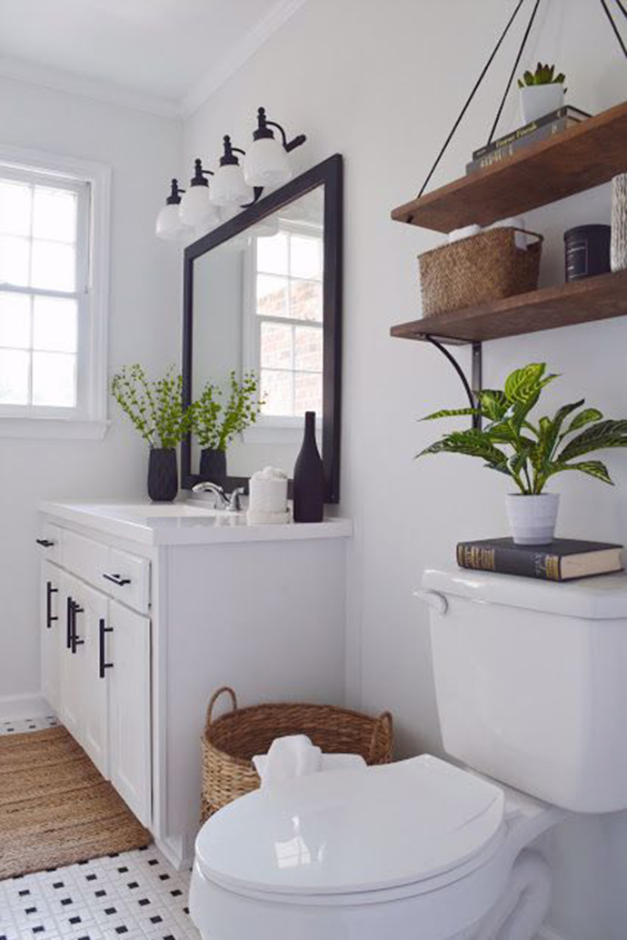 :卫生间几乎没有光照,如果你是一个植物杀手,推荐摆放一些绿色的仿真花装饰也没问题。