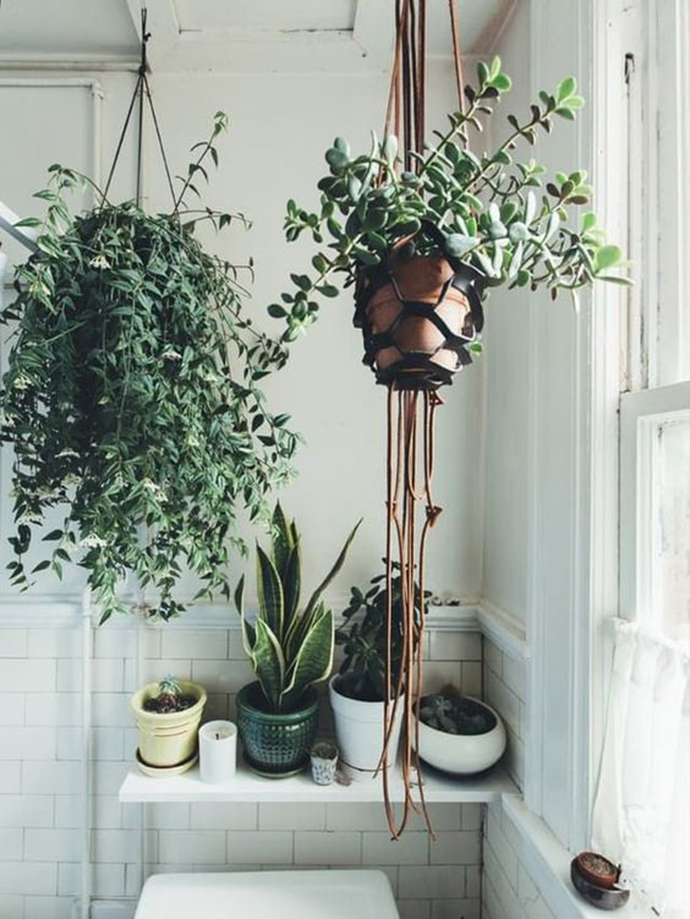 卫生间装饰卫生间面积较小,一般湿度较大,且较阴暗,不利于一般植物生长,因 此应选择抵抗力强且耐阴暗的蕨类植物。卫生间采用吊盆式较为理想,悬吊高度以淋浴 时不被水冲到为佳。
