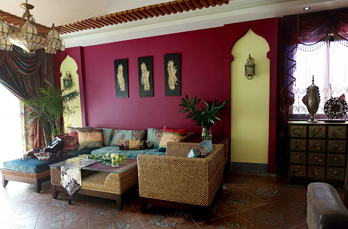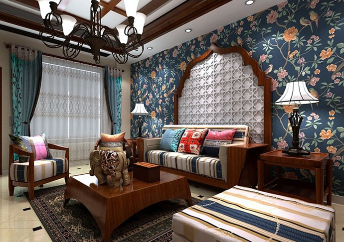 :实木、重金属、自然:因东南亚家居偏热带风情,推荐运用散尾葵、橡皮树等热带树种。