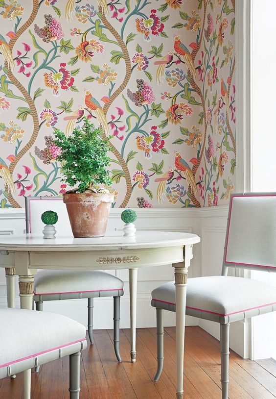 满铺的大花朵壁纸往往色彩绚丽,可以让室内焕发出新的活力,仿佛置身于繁盛的花园中,是近几年非常流行的风格之一。