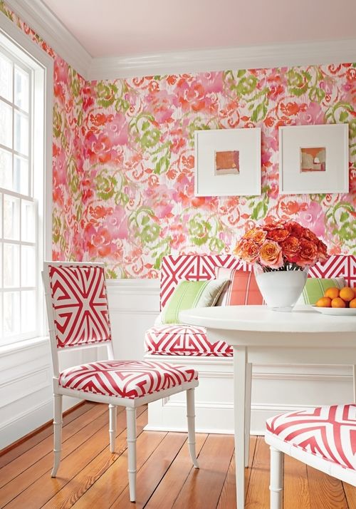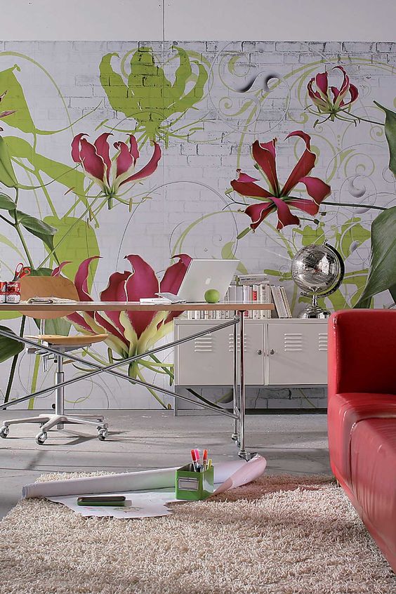 如果你喜欢花朵带来的愉悦感受,却没有时间与精力照看它们,不妨在家中贴上花朵壁纸,同样可以为室内空间带来生机和活力。Source | pinterest