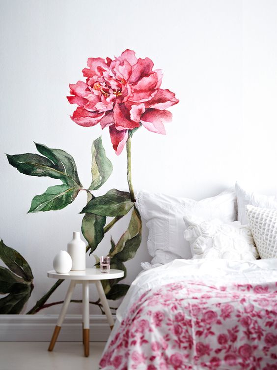 如果你喜欢花朵带来的愉悦感受,却没有时间与精力照看它们,不妨在家中贴上花朵壁纸,同样可以为室内空间带来生机和活力。