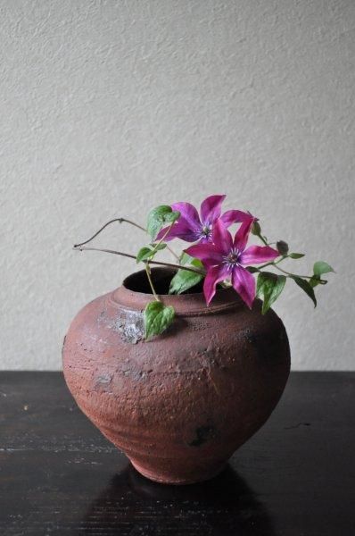 带有粗糙肌理的素烧花器,可以简单地搭配一些枝条或花茎自然弯曲的花草,
