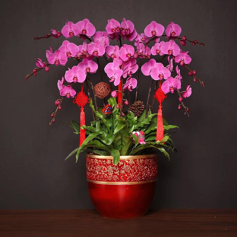 蝴蝶兰、大花蕙兰、红掌、鸿运当头……这几种花材的花朵都比较大,颜色也十分鲜艳,摆在家里非常喜庆,绝对能为家里的年味更浓。而说到这几种花材:红掌、鸿运当头的价格比蝴蝶兰便宜,更实惠一些,可以多买几盆摆在家里的不同位置,寓意来年红红火火,运气亨通。