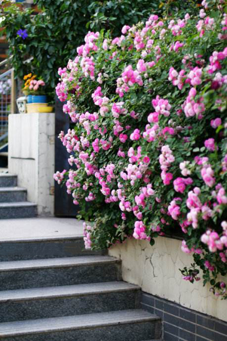 蔷薇属于攀援型灌木,因此非常适合用于立体绿化,如墙面垂直绿化,增强建筑物的生命力和美感;或者在公园、庭院的游廊、花架、拱门等构架上装饰蔷薇,形成一道亮丽的风景线。当然,也少不了插花,大花品种可以作为焦点花在作品中出现,小花品种则可以作为修饰,或者都可以单独成型哦。