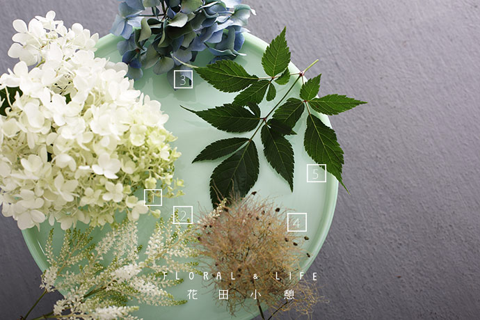 - 作品配色 -1.在制作比较清爽的作品时,可以尝试给植物留下更多自主的呼吸空间,让作品整体看起来更加自然。