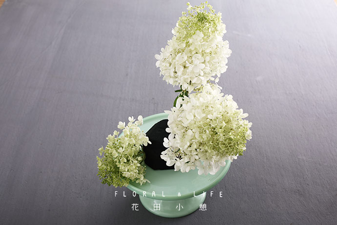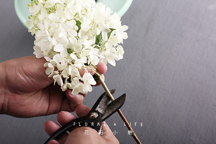 白色绣球斜剪45度。