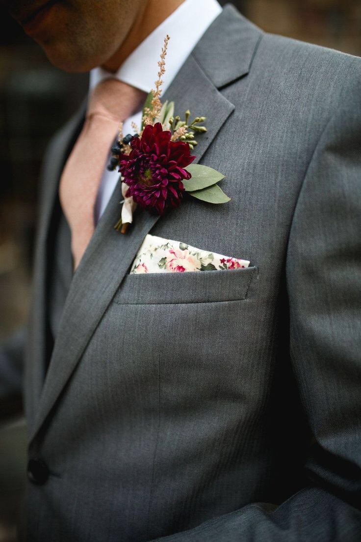 说到这里,我们再来讲一讲新郎胸花的来源:在古代欧洲男孩向女孩求婚的时候,送一束花给女孩,如果女孩愿意的话,就会从花束中选出一朵花别在男孩胸口上。