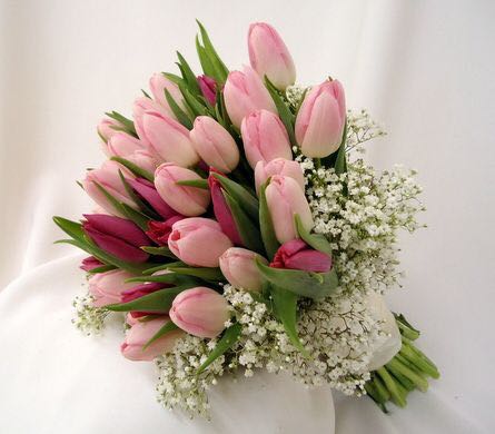 郁金香的花语是:爱、慈善、名誉、美丽、祝福、永恒、爱的表白和永恒的祝福,它是荷兰的国花,其颜色种类繁多,婚礼常用的是白、红、橙、黄、粉等等。优雅高贵的气质深受广大新娘喜爱。