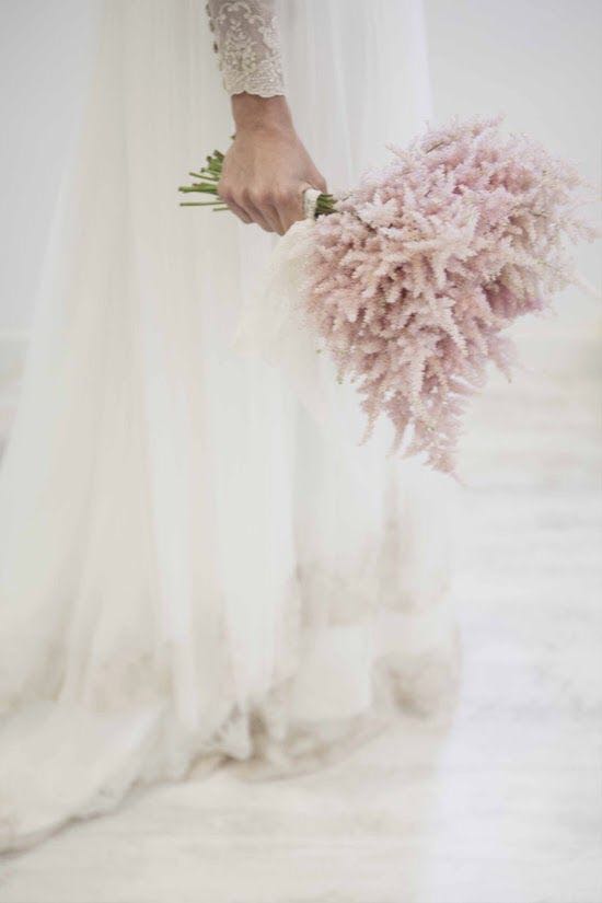 在很多人看来,最美的的雾状花材是满天星,但除了满天星,还有一个日渐兴起的的雾状花材,它就是落新妇!落新妇多以粉色、浅黄、枚红色为主,星星点点的小花聚集在一起,形成宝塔状的花枝,远远看起来有一种颇为奇妙的朦胧美感。无论是作为主要花材还是辅助花材,落新妇都以它的美征服了新娘们。
