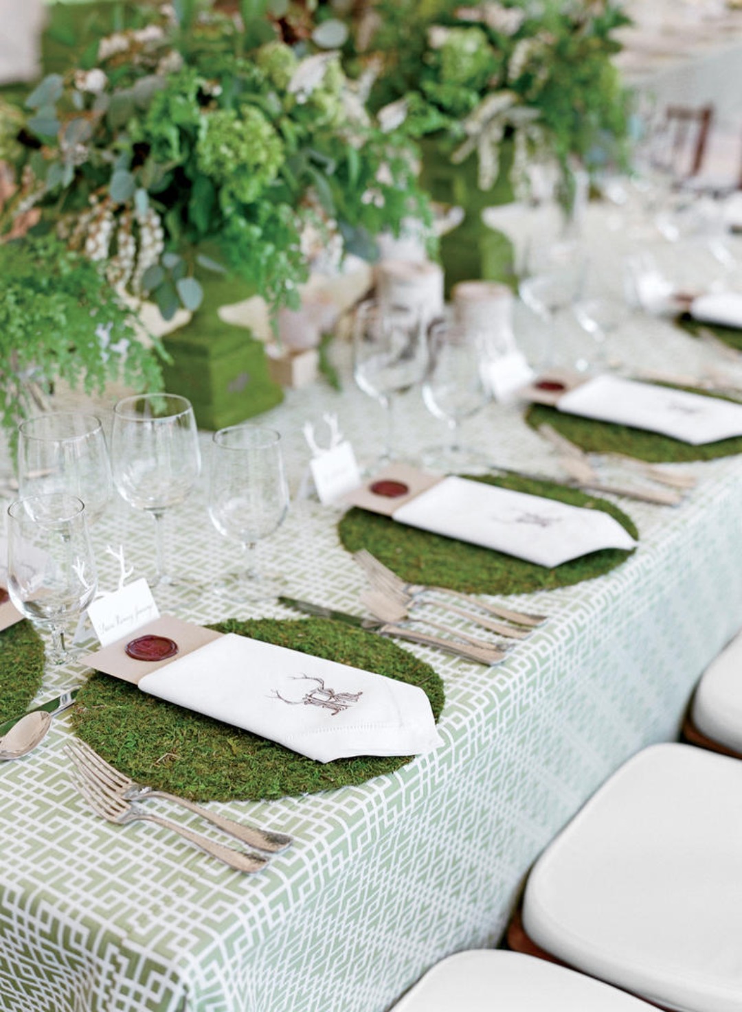 亲近大自然,苔藓散发着天然的清新香气。苔藓还是一种造型百变的植物,除了餐垫,我们可以制作苔藓数字、苔藓背景墙面、苔藓护航卡……8.眼花缭乱的晚宴礼服
