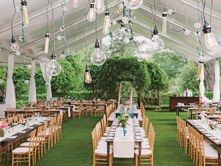 户外婚礼担心下雨,就把花园搬到自然光充足的室内。不过这回增加你的花材和花艺设计成本。咨询你的花艺师,看看有什么节省预算的方法。