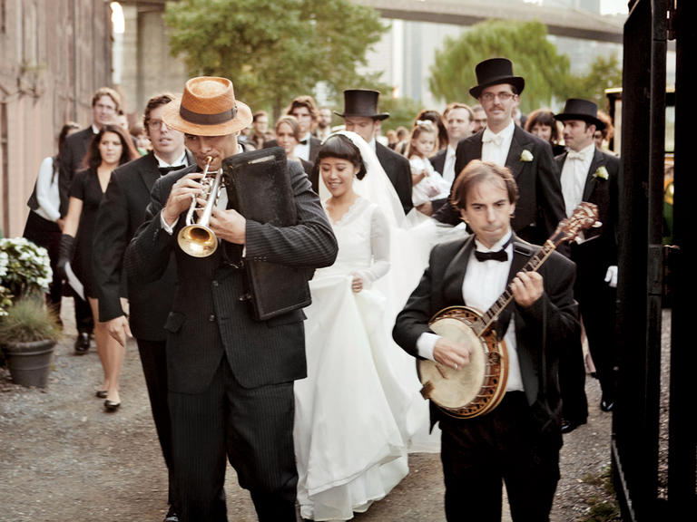 婚礼进行曲,不进教堂,干嘛要演奏瓦格纳?这么多音乐形式,随便你自己挑选吧!来点爵士,加点摇滚,请现场表演DJ,或是找一家希腊传统乐队,音乐护送你到婚礼场地。