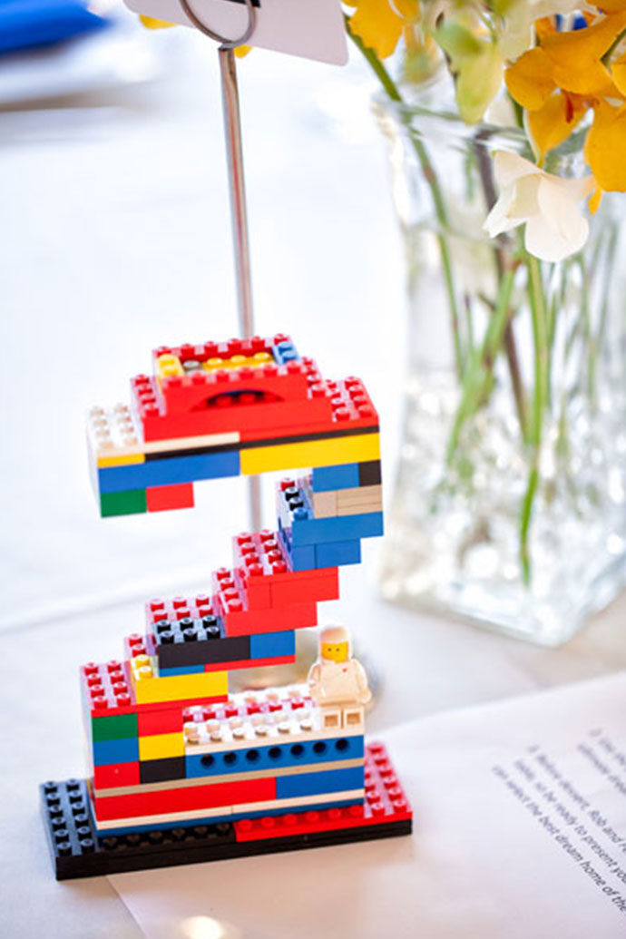 乐高玩具拼成桌号牌,带回家还可以组成其他造型。