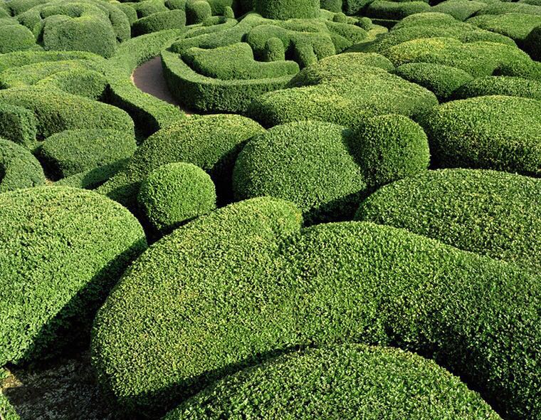 Julien de Cerval遵循着古老的园艺传统,所有的灌木都被精心修剪雕琢成滚圆形。这些‘气泡’扭动着、翻滚着,犹如充满生命力般。可以说,玛琪萨克花园的园艺造型是真正的艺术品,是活着的、呼吸着的迷宫。