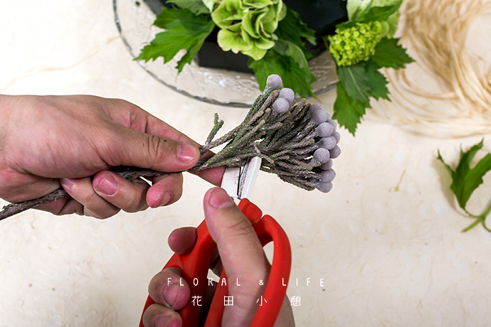 2.在花材选择上,尽量选择质感比较贴近自然的材料,当然你也可以根据相应的主题选取选择合适的材料进行制作。