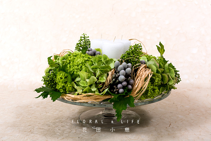 1.蜡烛与各类花材的搭配,既有节庆日温馨浪漫的氛围感,也有作品专属于自身的的气质、性格和美感。