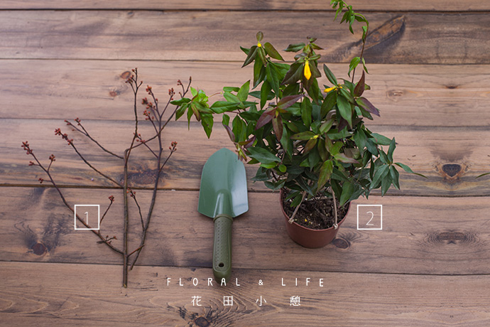 沉木可给花艺作品凭添自然的灵气,提供更广阔的想像空间. 将法国香水花移栽于容器内并填满土壤,再放置一块古朴的沉木,苍劲的质感和花材无暇的融合。树枝在修整过程中,针对花材所需长度进行适当剪短。在裁剪过程中,需注意树枝与法国香水花的协调性,保证两者能相互附着展现出优雅的线条。