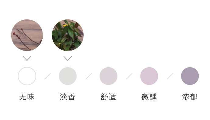为了方便大家在花材搭配时的选择,花田小憩特设香味等级图谱,供大家在学习过程中了解更多植物的属性,以方便作品选择更适合的空间位置陈列。