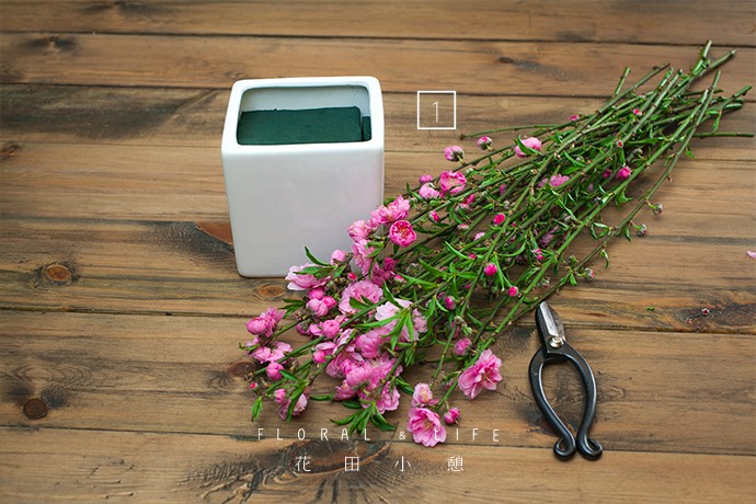 保持花枝长度一致。裁剪的枝干不要急于扔掉,可作为绝佳的辅枝进行搭配。