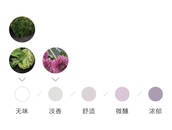 为了方便大家在花材搭配时的选择,花田小憩特设香味等级图谱,供大家在学习过程中了解更多植物的属性,以方便作品选择更适合的空间位置陈列。