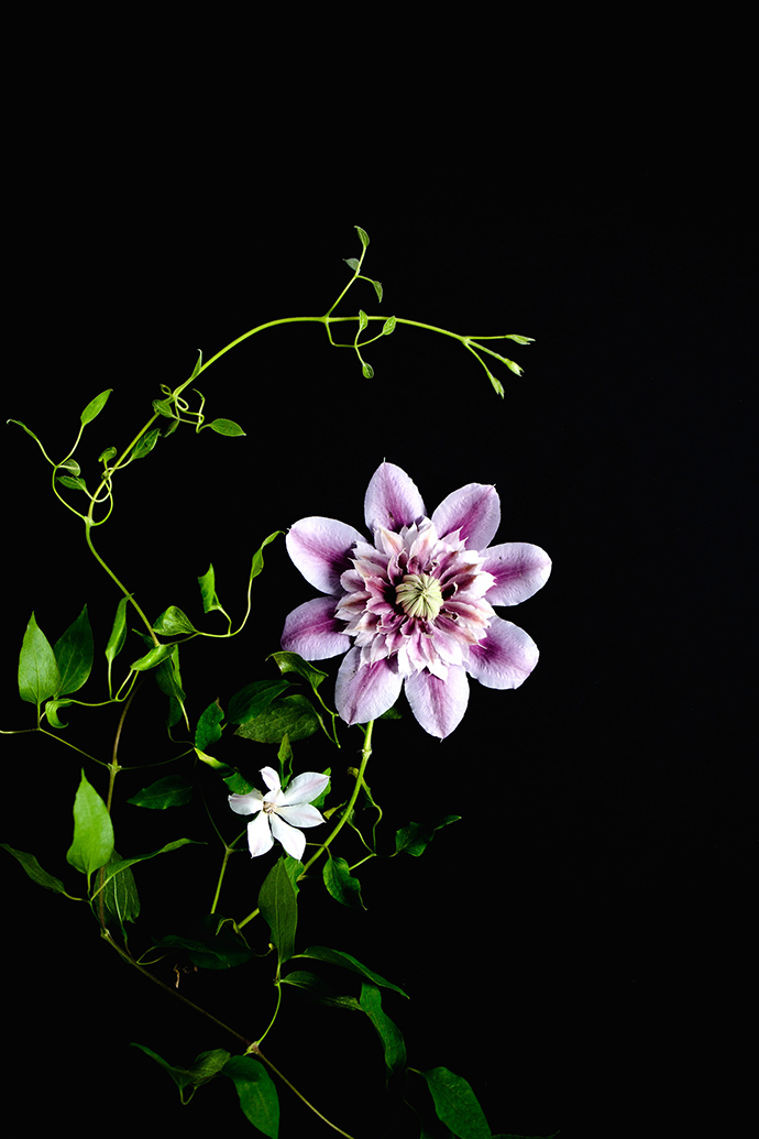 铁线莲被称为‘藤本植物皇后’,园林绿化中经常被用作道路绿化,花艺中也能完美营造作品的线条感。