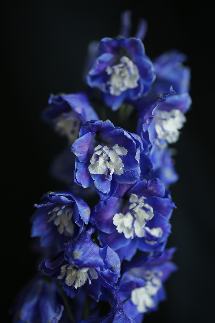 安静不喧闹,有实力却不炫耀,这是飞燕草给我的第一感觉。初见飞燕草就被它的质感和纹理吸引到,有种岁月静好的自然之感。
