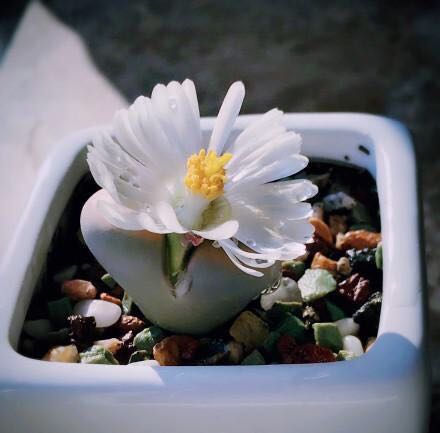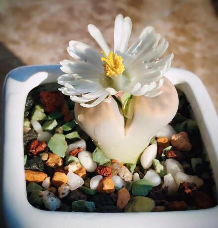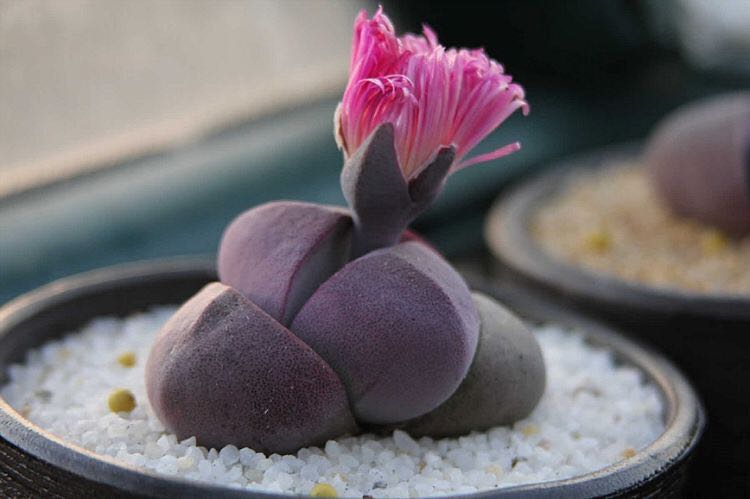 说到生长喜好:生石花喜冬暖夏凉气候。怕低温,忌强光。喜阳光充足,生长适温为10~30℃。宜生长在疏松的中性沙壤土,异株授粉花谢后结出果实,可收获非常细小的种子。