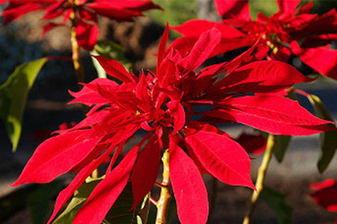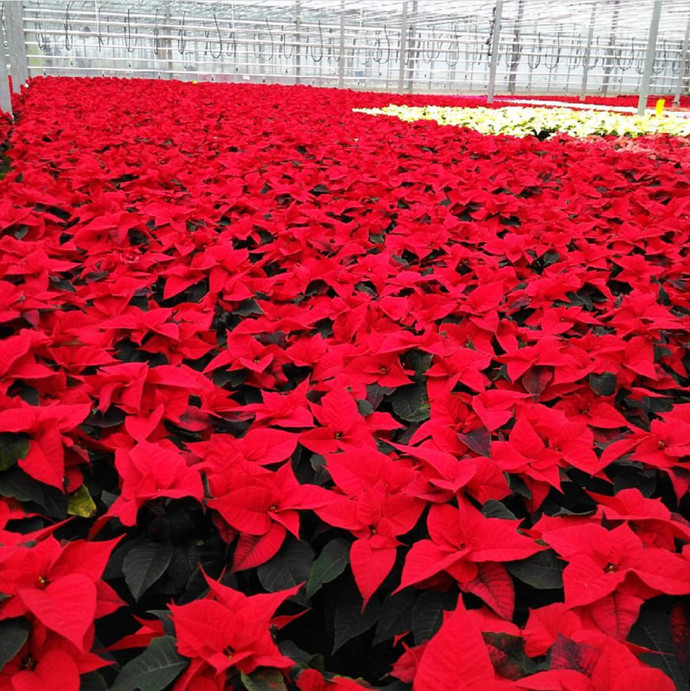 一品红是冬季和春季重要的盆花和切花材料,花色艳丽、花期很长,又正值国庆节、圣诞节、元旦、春节期间开放,深受国内外人们的欢迎。