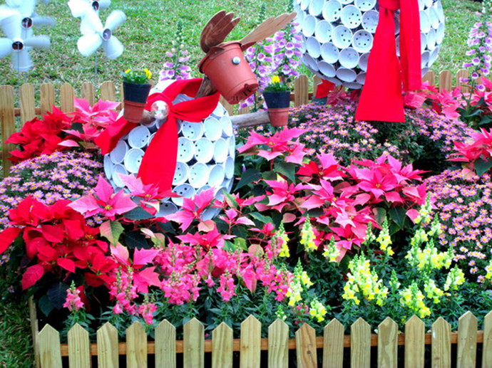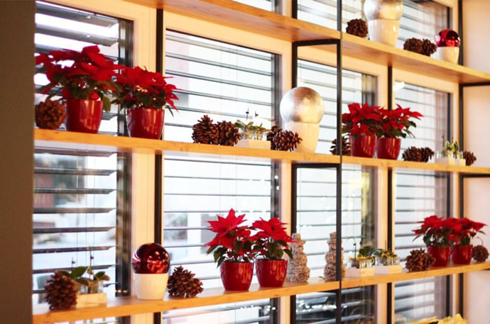 下面就来具体说说一品红的应用啦:1.盆花篇