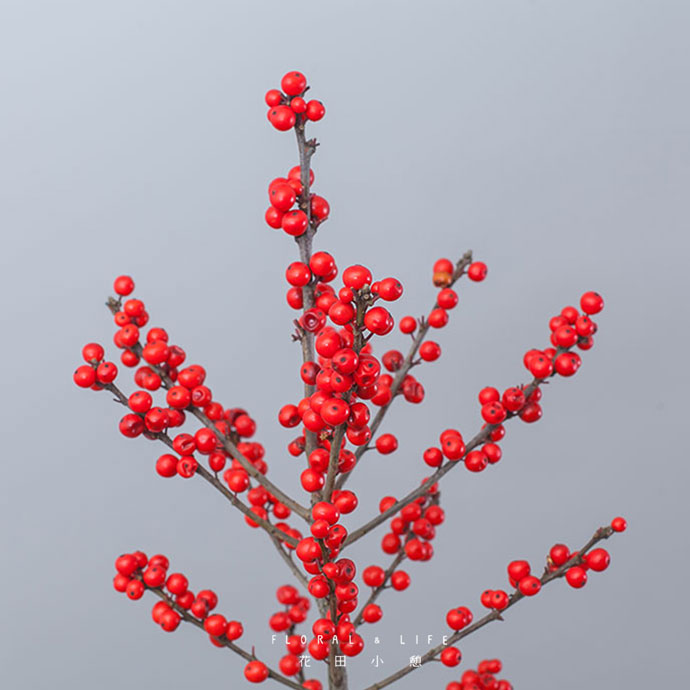 冬青可谓是圣诞必不可少的颜色担当,也被称为圣诞果的它,颜色通体红润,最正的圣诞红就是它了。