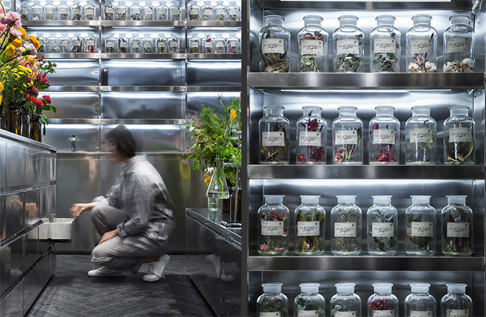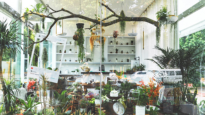 如果你不太喜欢热烈的颜色,想必「植物的旅程」花店应该会勾起你的兴趣。店里是大面积的金属色装修风格,钢铁森林的世界,用植物温暖人心。在这里与闺蜜拍照凹造型应该是度过周末或假期下午的正确方式。