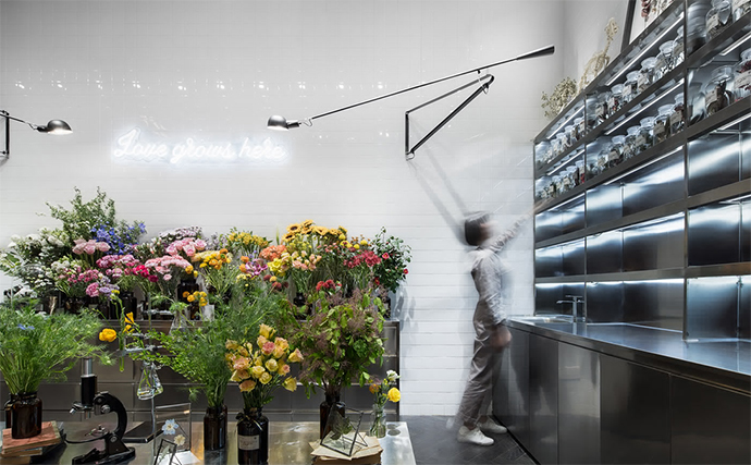 花艺生活馆中的颜值担当。大面积水泥灰和原木色搭配,处处都流露出简约的时尚感,而且店里的设计也充满亮点。这里的光感和环境非常适合拍照,欢迎大家去打卡。