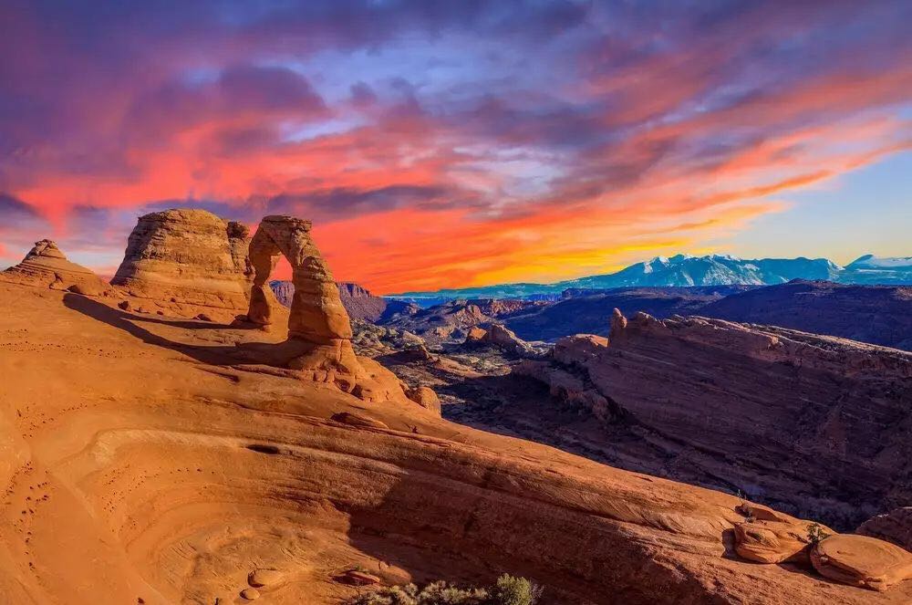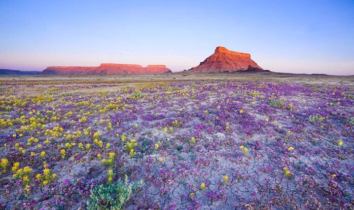 犹他州,美国西部的一个州四周为落矶山脉、科罗拉多高原、大盐湖沙漠,气候极其干旱。这片不毛之地一向以干旱及寸草不生而闻名,但也正因为这极端的气候才有了沙漠之花的震撼景象。