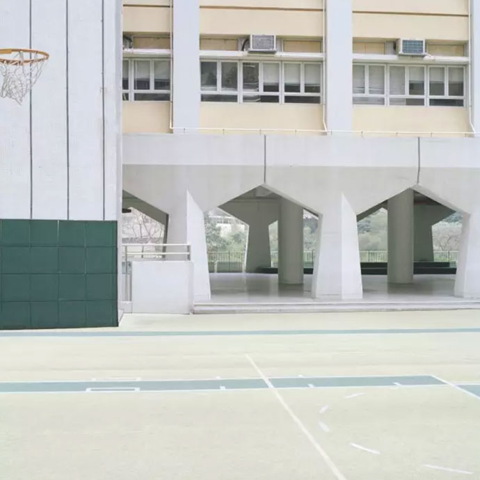 港岛学校运动场的淡彩色调和建筑物成为Ward《courts》系列作品的灵感来源。