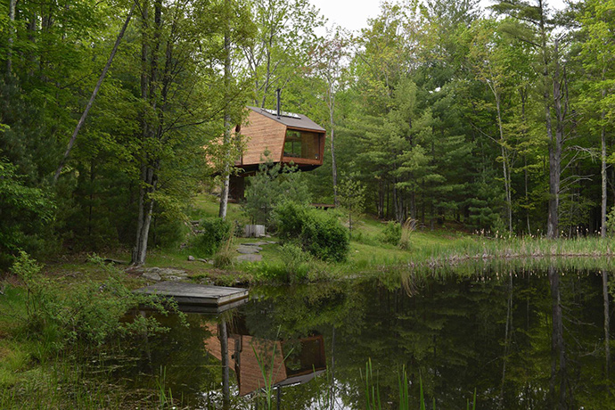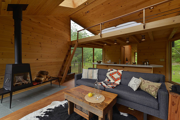 该树屋坐落在 Woodstock 镇外,距离纽约市有不到两个小时的车程,这个树屋俯瞰着壮观的Catsills山脉。建筑空间包括一个开放的大厅、木火炉和厨房,在二层则有一个宽敞的loft式的卧室。