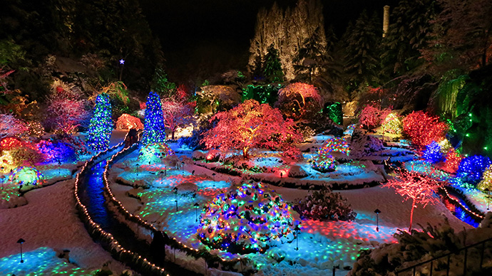 每年布查特最热闹的时候当属圣诞节,届时,整个花园都会被彩灯笼罩,可以赏灯滑冰。如果你很感兴趣,可以到文末找到布查特花园的网站,自行查看游园须知。