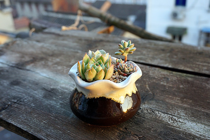 一盆茉莉栀子怎么也得几十块,现在多肉的价格,一百块钱能买一阳台,分分钟让阳台变花园,一个巴掌大的花盆就足够多肉长一两年,省时又省心。