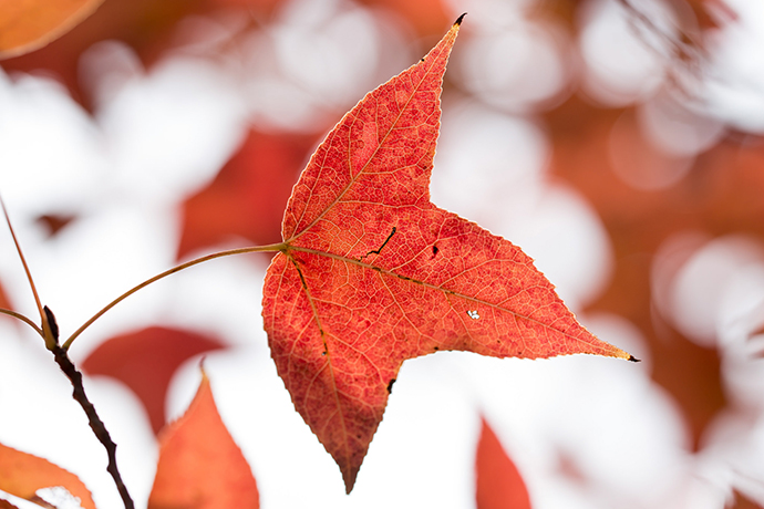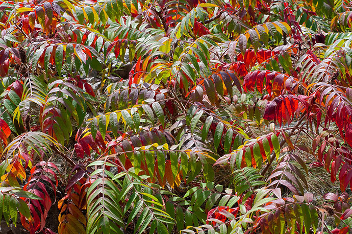 这种漆树科的红叶树在北方很常见,常常作为行道树栽种在城市中。到了秋天,一排排的火炬树好似大地上向天空燃烧的火炬。火炬树的叶子是长长的羽状复叶,非常容易辨识。