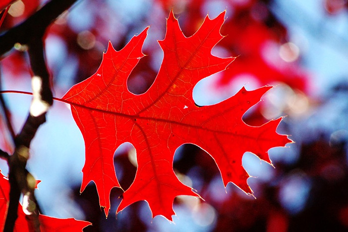 槭树是槭树科槭属树种的泛称,其中一些种俗称为枫树。槭树在长期的培育过程中出现了许许多多的变种和变形,叶子变红的情况也各不相同,有一部分在秋冬季节仍然能保持常绿,而有一部分的槭树会在秋天变成鲜艳的红色,鸡爪槭、三角枫、五角枫、秀丽槭、五裂槭、三峡槭、关东槭、三花槭等。栎树别称橡树、柞树,属于壳斗科栎属。树干奇特苍劲,树形优美多姿,叶缘有锯齿,少有全缘。叶片在秋季落叶前会发红褐色。栎树的叶子形状漂亮,果实也很有趣。